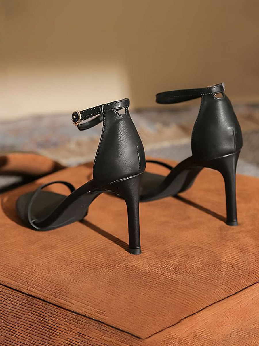 รองเท้าส้นสูงดีไซน์เรียบหรู ด้วยสายรัดเส้นเล็กและส้นแหลมสูง 7 ซม. ช่วยเสริมเรียวขาและรูปร่างให้ดูเพรียวสวยอย่างมาก